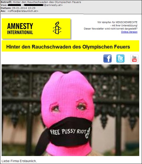 Nachfolgenden Newsletter haben wir am vergangen Donnerstag von „Amnesty International“erhalten: